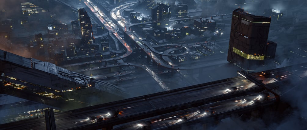 This set of 24 modular highway assets includes interchanges, intersections, roads, and bridges, designed to make your cyberpunk city more realistic and expansive.
